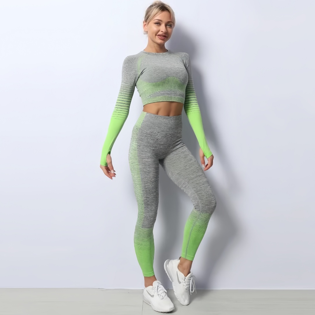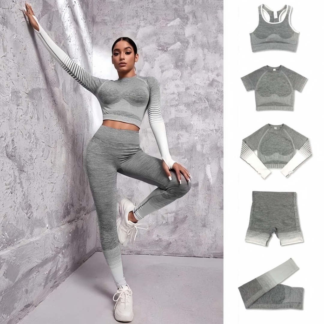 2PCS Women’s Seamless Gym Outfit Set – Sports Bra, Long Sleeve Top, Shorts & Booty Leggings