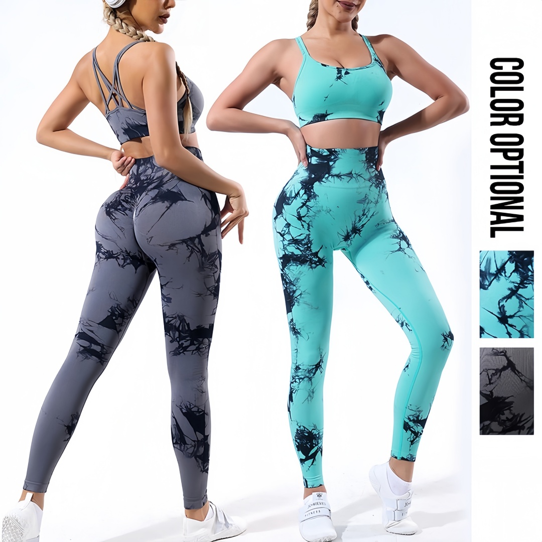 Seamless High Stretch Tie Dye Yoga Set Sports Bra Tummy Control Leggings Gym Wear - Tie Dye Yoga Set and Gym Wear price