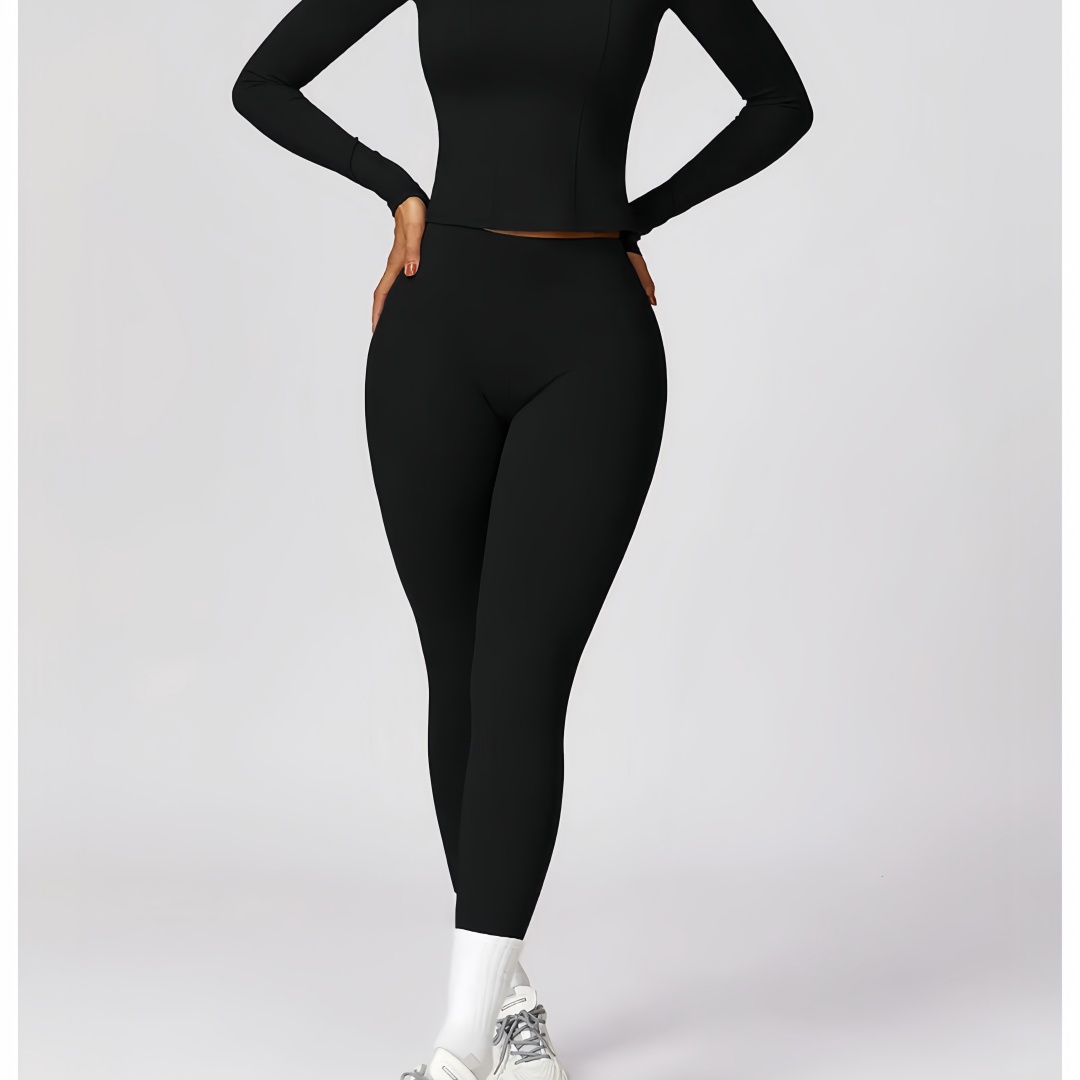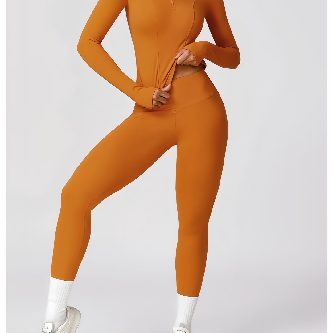 Women’s Quick-Dry Zipper Yoga Set – Tight Long-Sleeve Activewear for High-Intensity Workouts