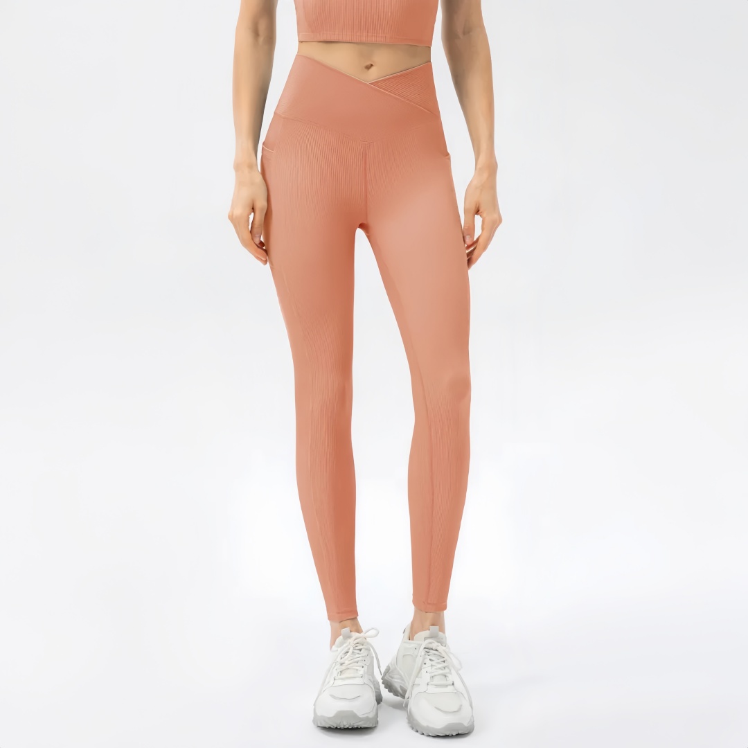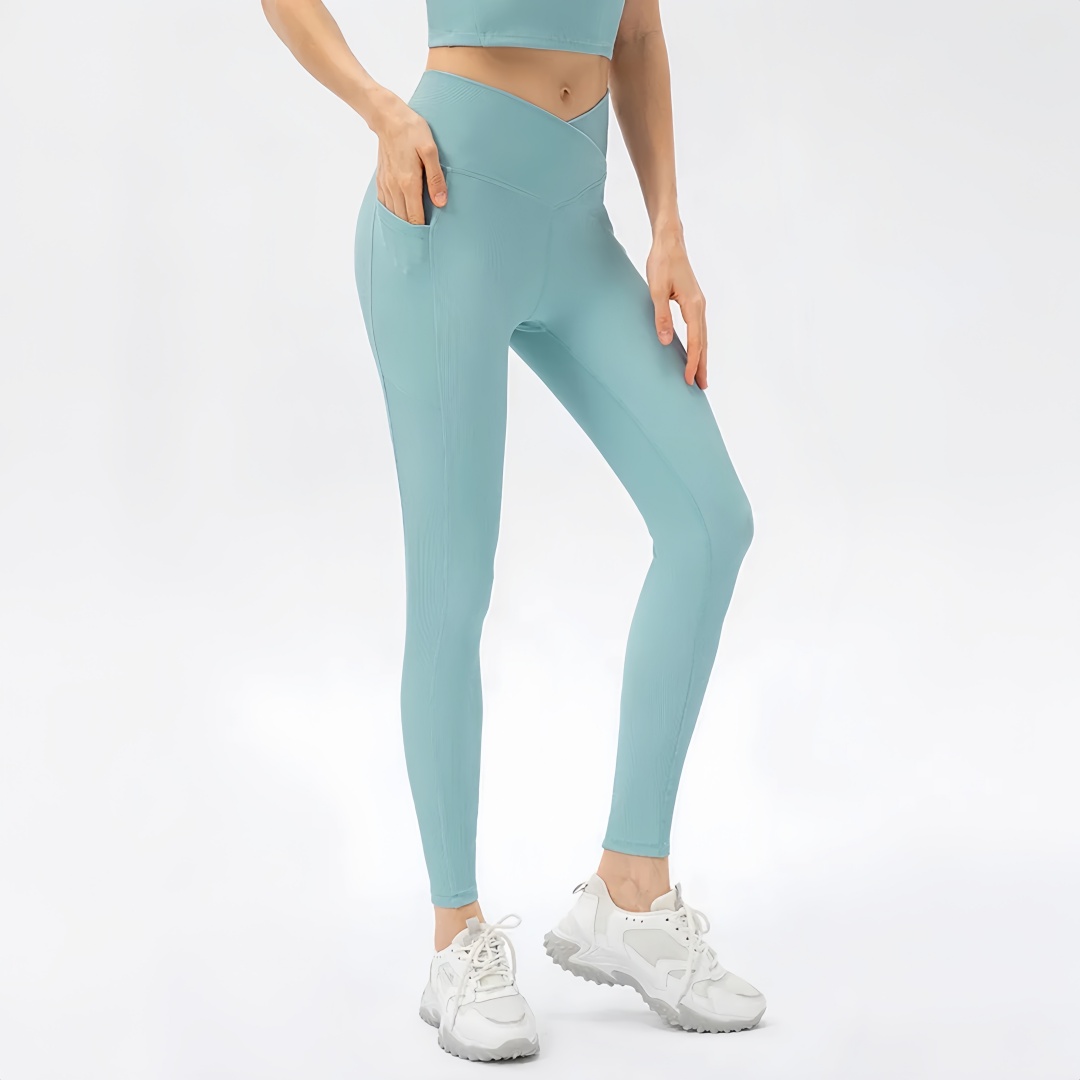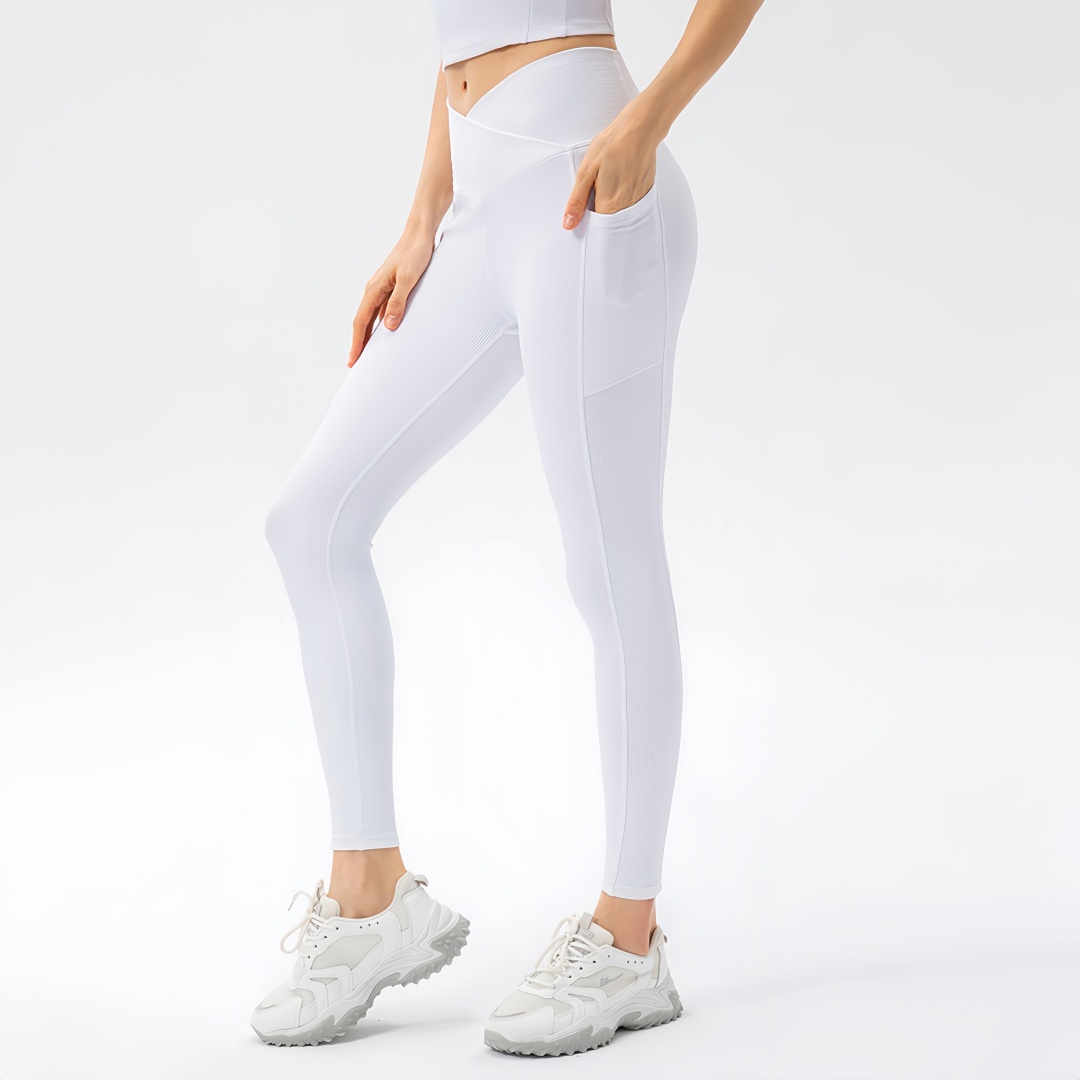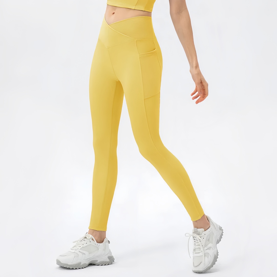 High Waist V-Cut Yoga Leggings with Pockets – Hip-Lifting Slim Fit Workout Pants for Women