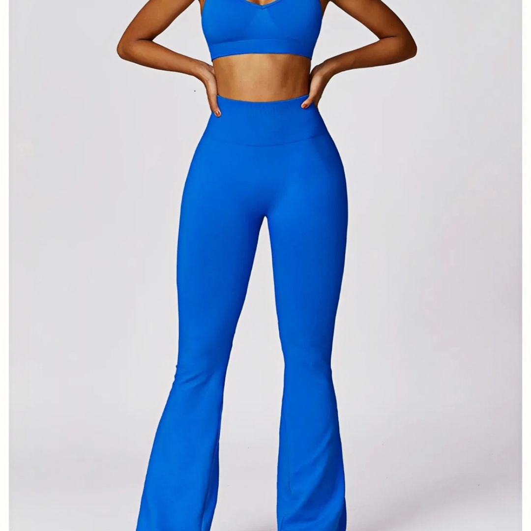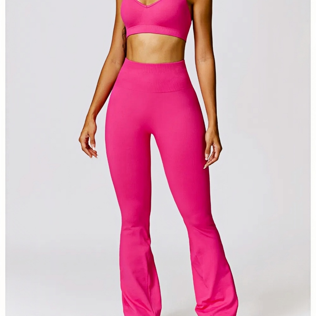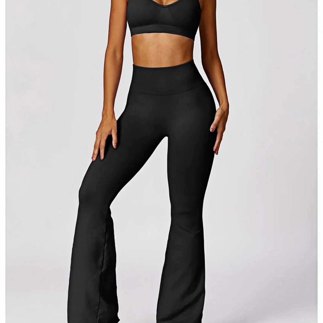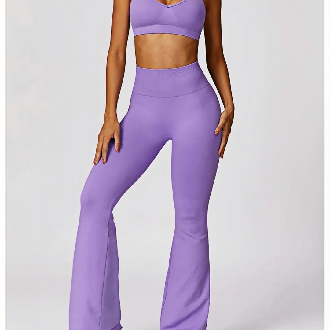Two-Piece Women's Yoga Set with Scrunch Butt Flare Leggings – Custom Workout Apparel Manufacturer